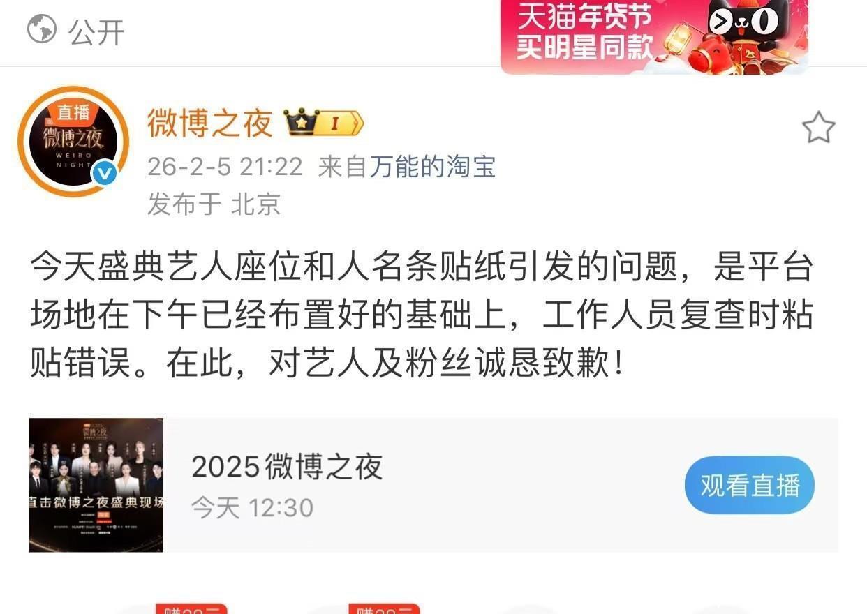 微博之夜现场座位误会,官方道歉推责工作人员,网友为何不接受
